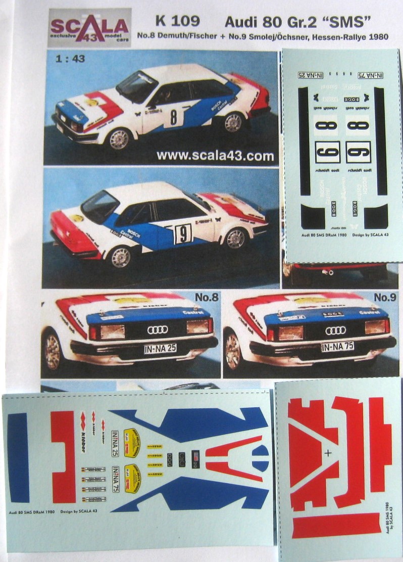 AUDI 80 Gr.2 n° 8 / 9 HESSEN RALLYE 1980 DECAL 1/43e