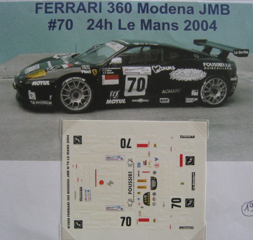 FERRARI 360 MODENA n° 70 LE MANS 2004 DECAL 1/43e