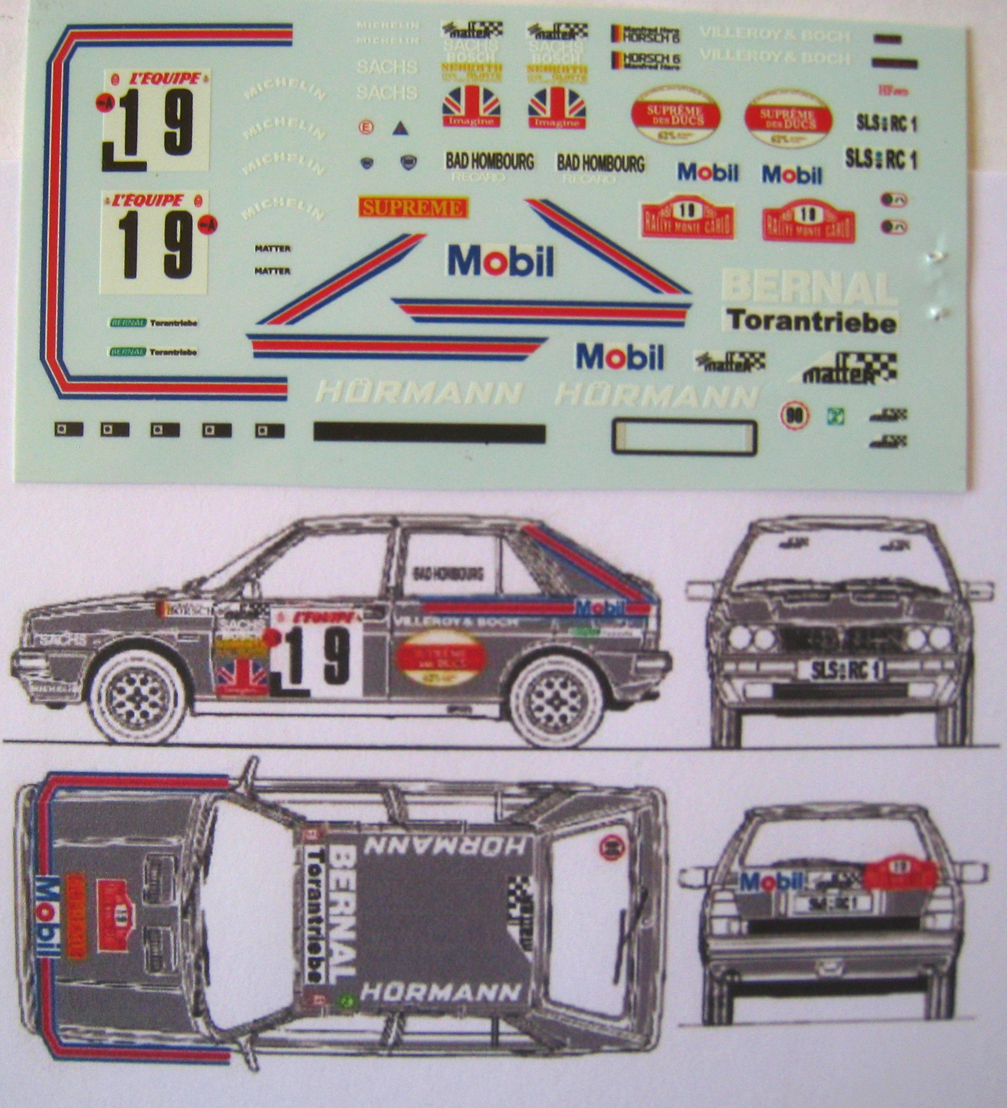 LANCIA DELTA n° 19 RALLYE DE MONTE CARLO 1988 DECAL 1/43e