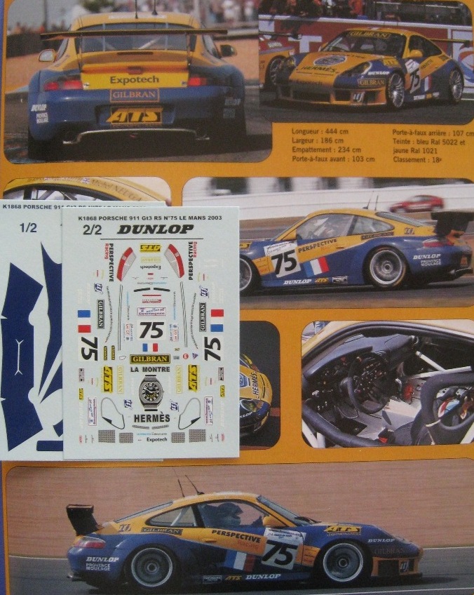 PORSCHE 911 GT3 RS n° 75 LE MANS 2003 DECAL 1/43e