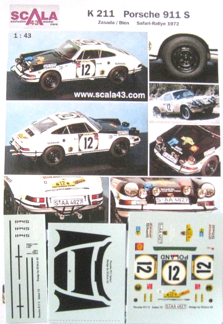 PORSCHE 911 S n° 12 SAFARI RALLYE 1972 DECAL 1/43e