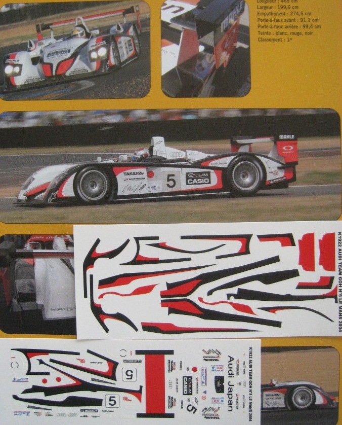 AUDI R8 n° 5 1ER LE MANS 2004 DECAL1/43e