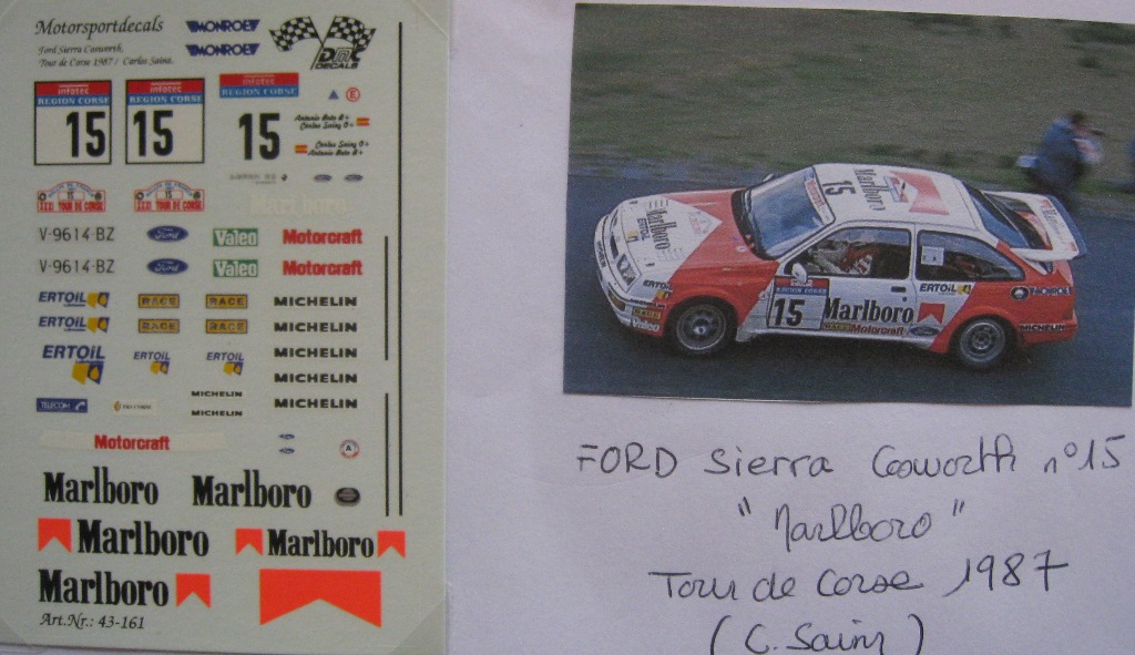 FORD SIERRA COSWORTH n° 15 TOUR DE CORSE 1987 DECAL 1/43e
