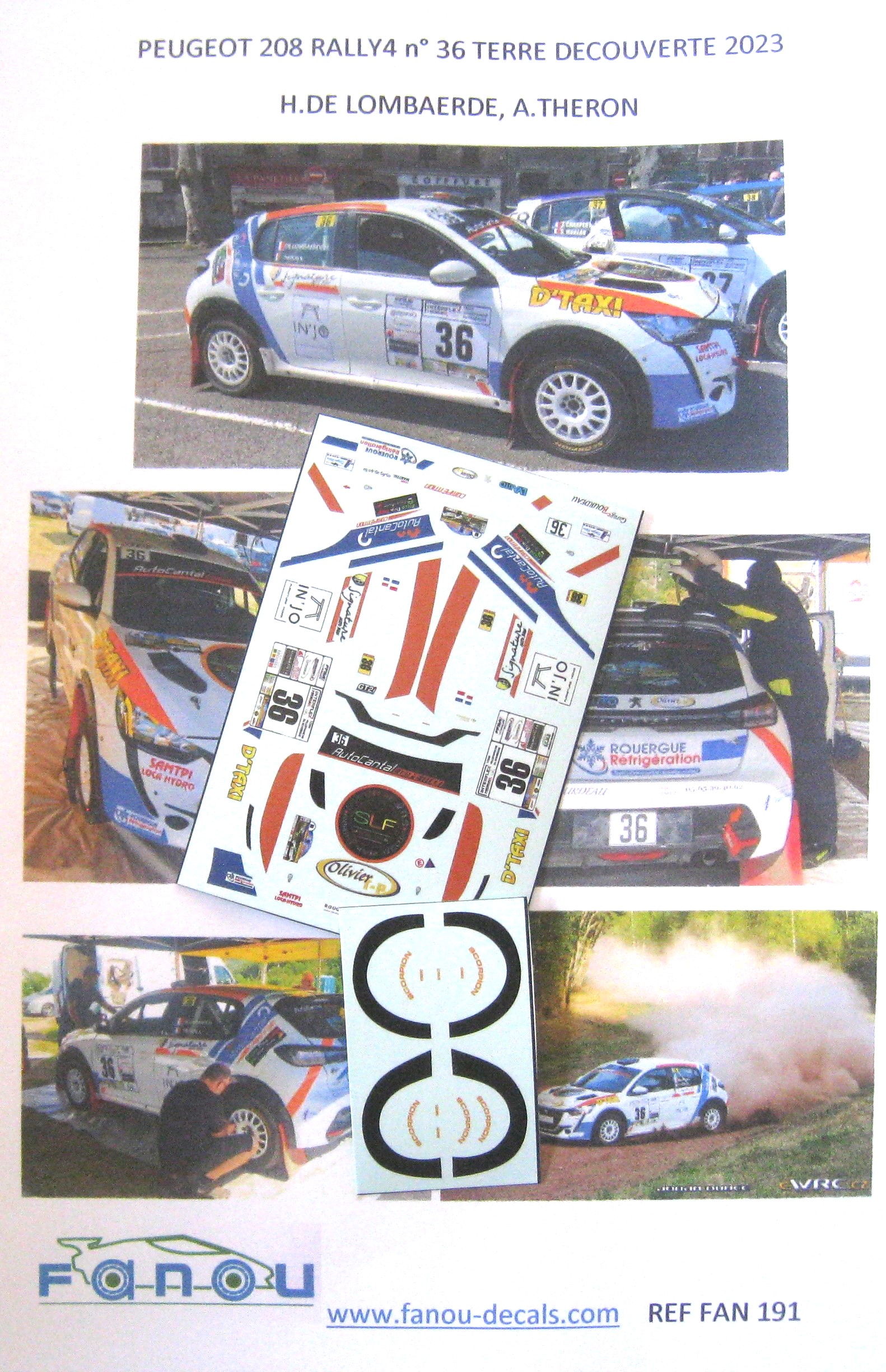 PEUGEOT 208 RALLY4 n° 36 RALLYE TERRE DE DECOUVERTE 2023 DECAL 1/43e