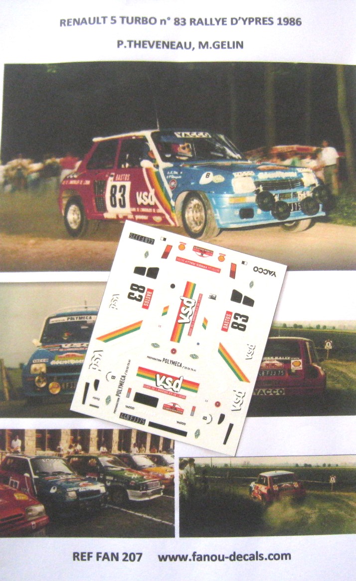 RENAULT 5 TURBO n° 83 RALLYE D’YPRES 1986 DECAL 1/43e