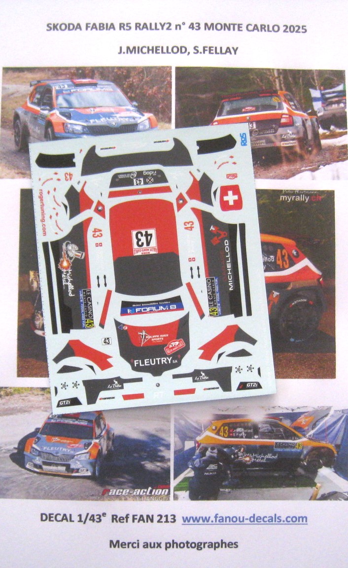 SKODA FABIA R5 RALLY2 n° 43 RALLYE DE MONTE CARLO 2025 DECAL 1/43e