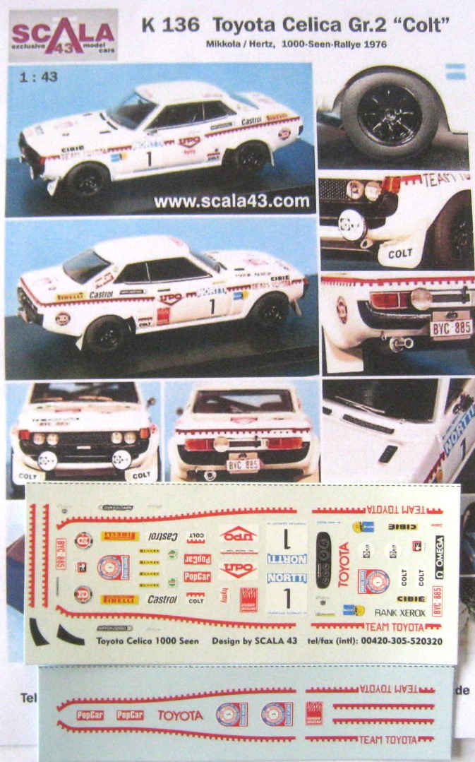 TOYOTA CELICA n° 1 RALLYE 1000 LAKES 1976 DECAL 1/43e