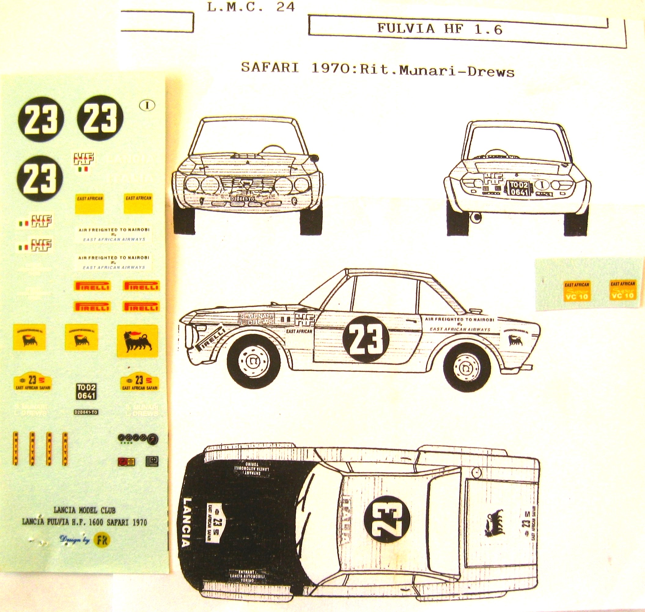 LANCIA FULVIA n° 23 SAFARI RALLYE 1970 DECAL 1/43e