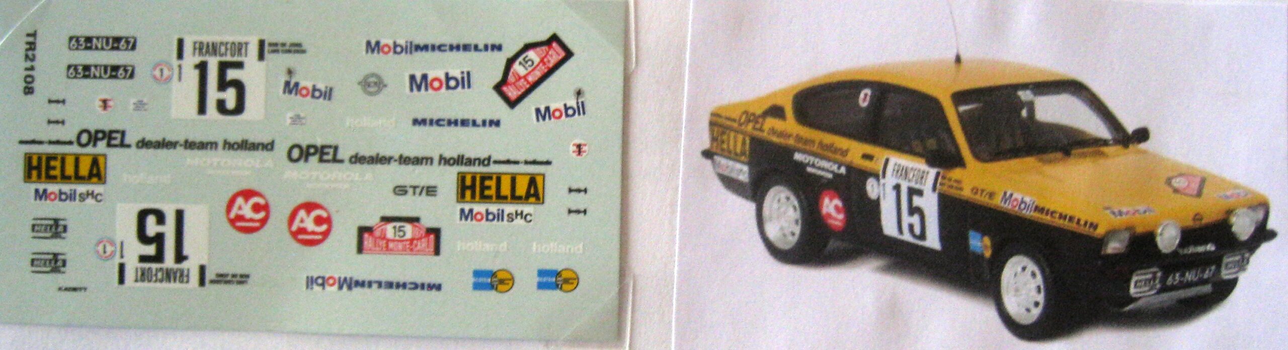 OPEL KADETT GTE n° 15 RALLYE DE MONTE CARLO 1977 DECAL 1/43e