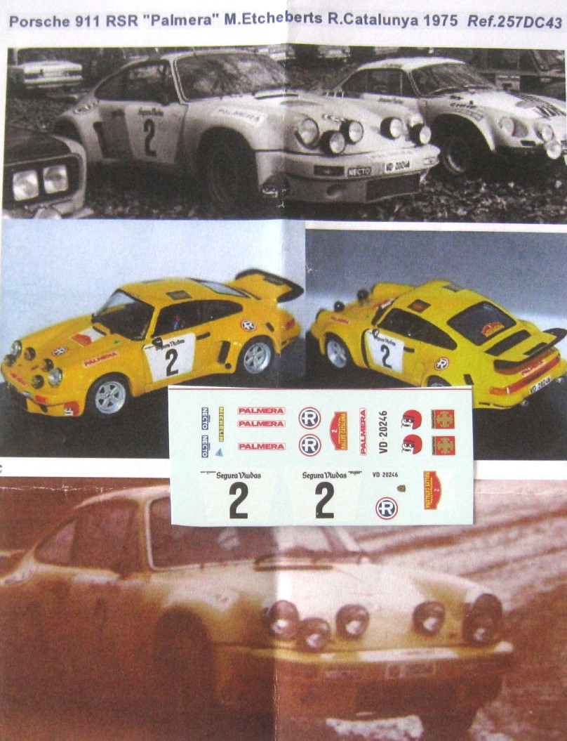 PORSCHE 911 RSR n° 2 RALLYE CATALUNYA 1975 DECAL 1/43e