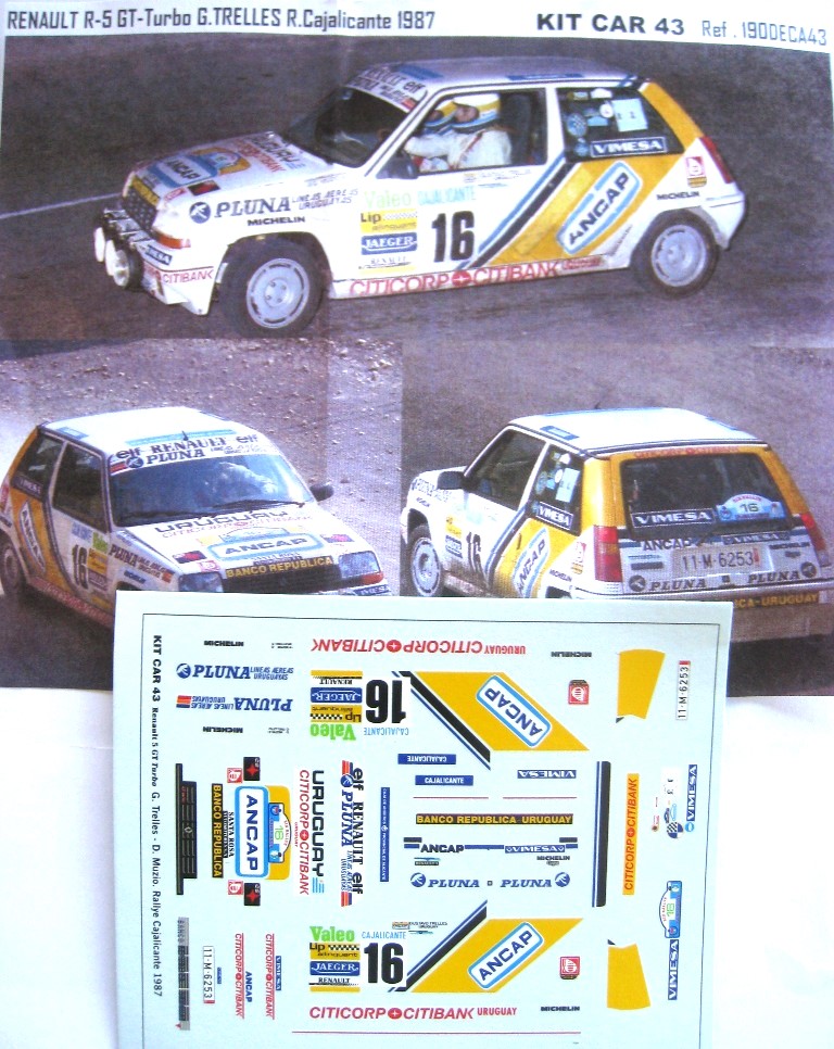 RENAULT 5 GT TURBO n° 16 RALLYE CAJALICANTE 1987 DECAL 1/43e